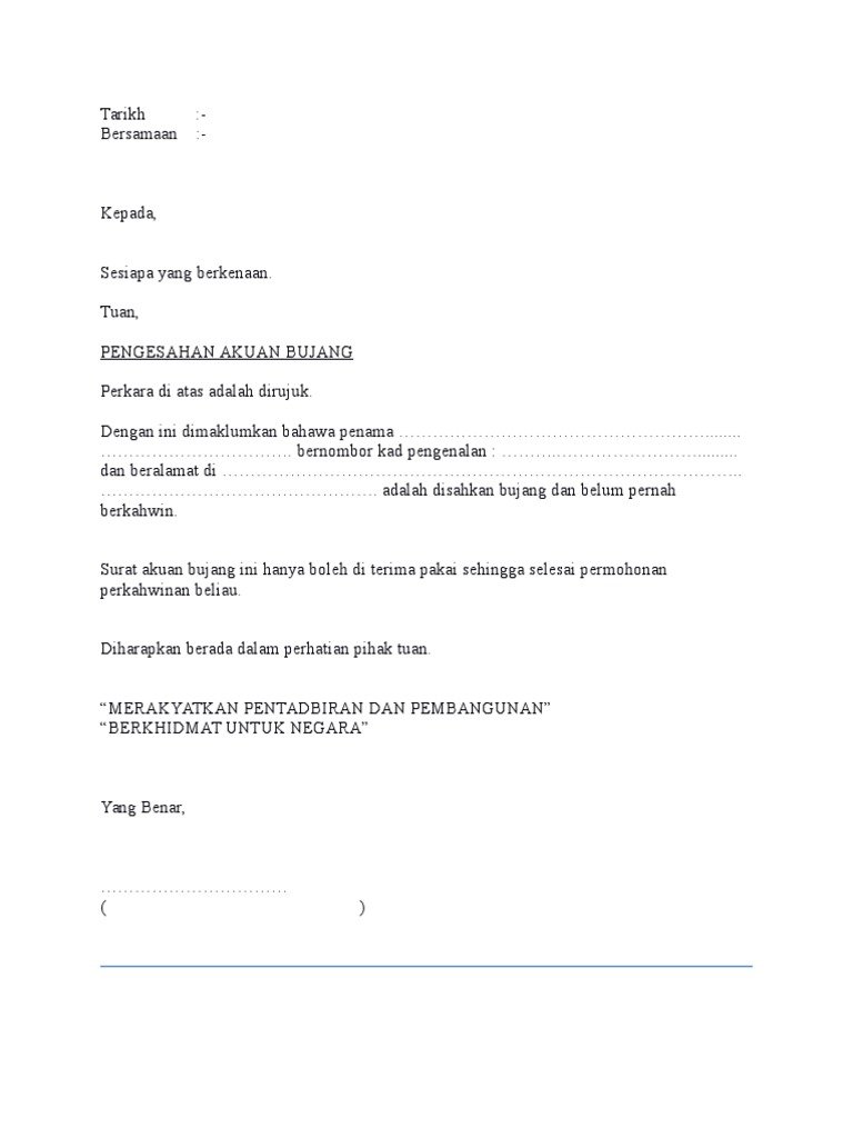 Panduan mengisi borang permohonan untuk berkahwin 1. Contoh Surat Akuan Bujang Daripada Majikan In addition it will include a. Contoh Surat Akuan Pendapatan Tanpa Slip Gaji Surat perakuan pendapatan 1.